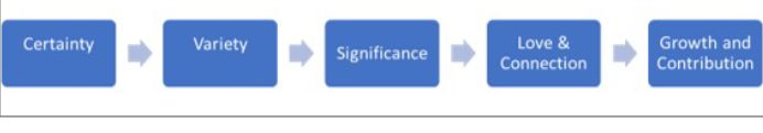 I will share the six human needs: Certainty, Variety, Significance, Love & Connection, Growth and Contribution